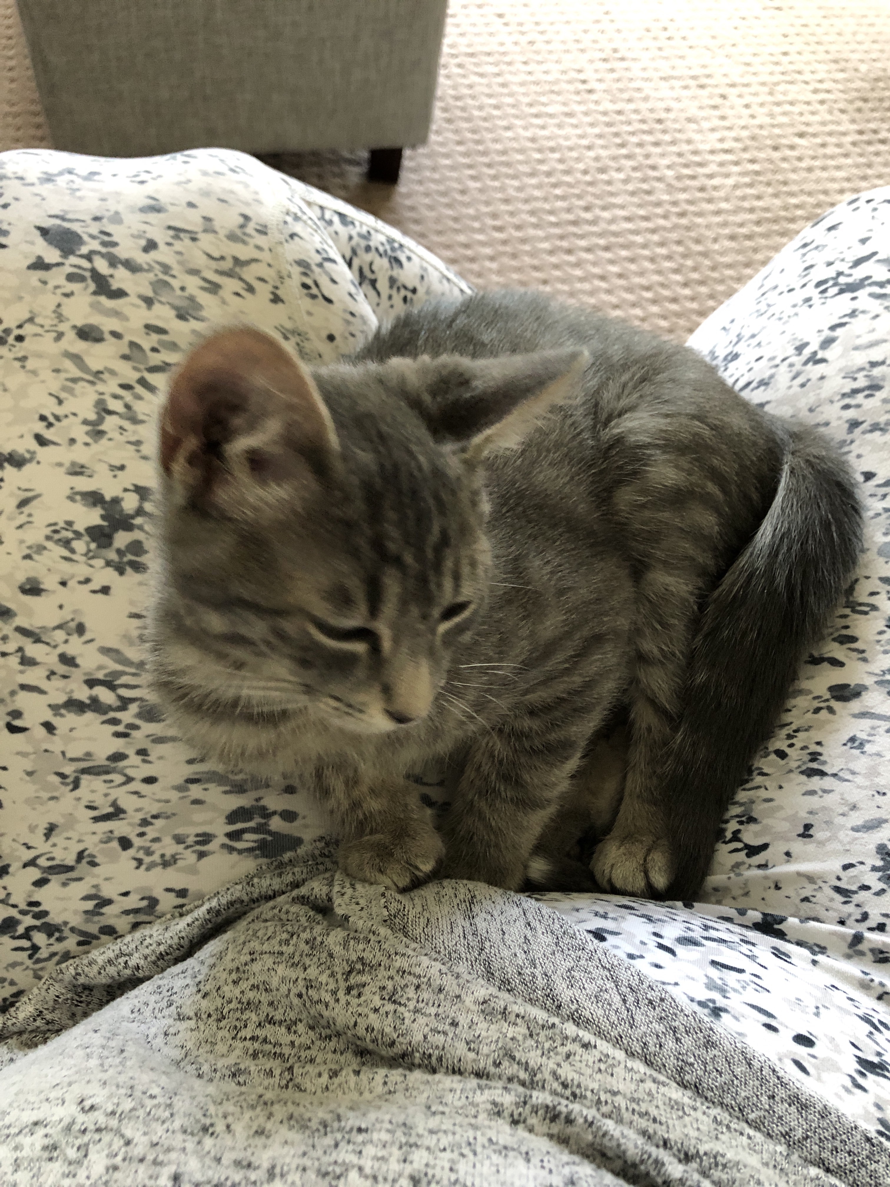 I thought that Koda and Summer had a lot of energy, but this kitten Sansa is something else. She knows two modes: freaky fast and dreamy dozing. These are the two extremes for Sansa. One moment she is purring with eyes closed as I gently run my hand along her smooth back; the next she is bounding across the carpet, appearing from under the bed and reappearing over behind the curtain. She is freaky fast like a spider monkey as she climbs her three story cat tree. I have a son like this. He also has two speeds, napping and full throttle. This has been his temperament from the time he began walking.